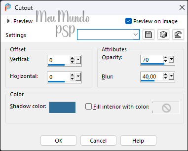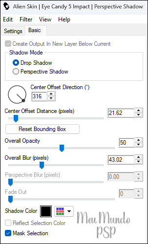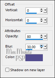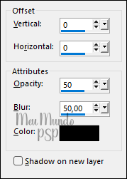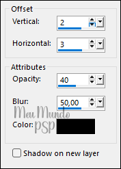 Effects → 3D Effects → Drop Shadow: 2 / 3 / 40 / 50 - Color = #000000 (Preto)