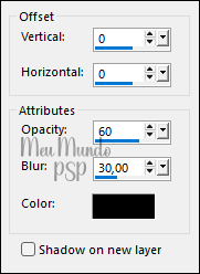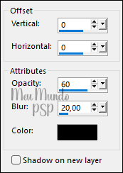 Effects → 3D Effects → Drop Shadow: 0 / 0 / 60 / 20 - Color = #000000 (Preto)