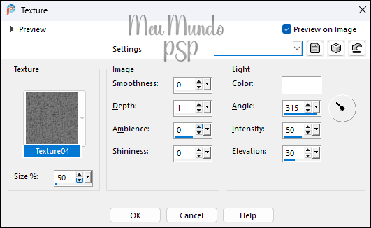 Selecione a Texture04, com as configurações abaixo: