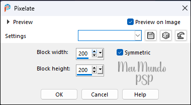 Effects → Distortion Effects → Pixelate, com as configurações