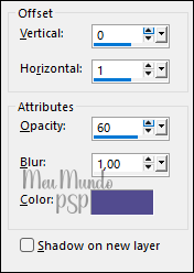 Effects → 3D Effects → Drop Shadow: 0 / 1 / 60 / 1 - Color = #524c8e