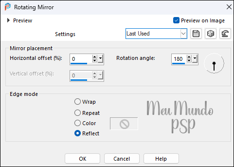 Effects → Reflection Effects → Rotating Mirror, com as configurações