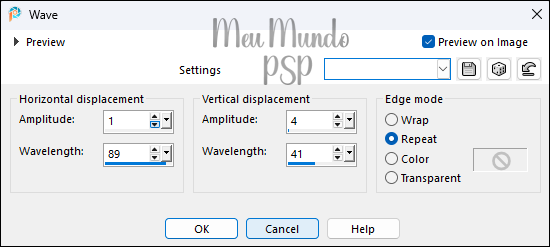 5_. Effects → Distortion Effects → Wave, using the settings below: